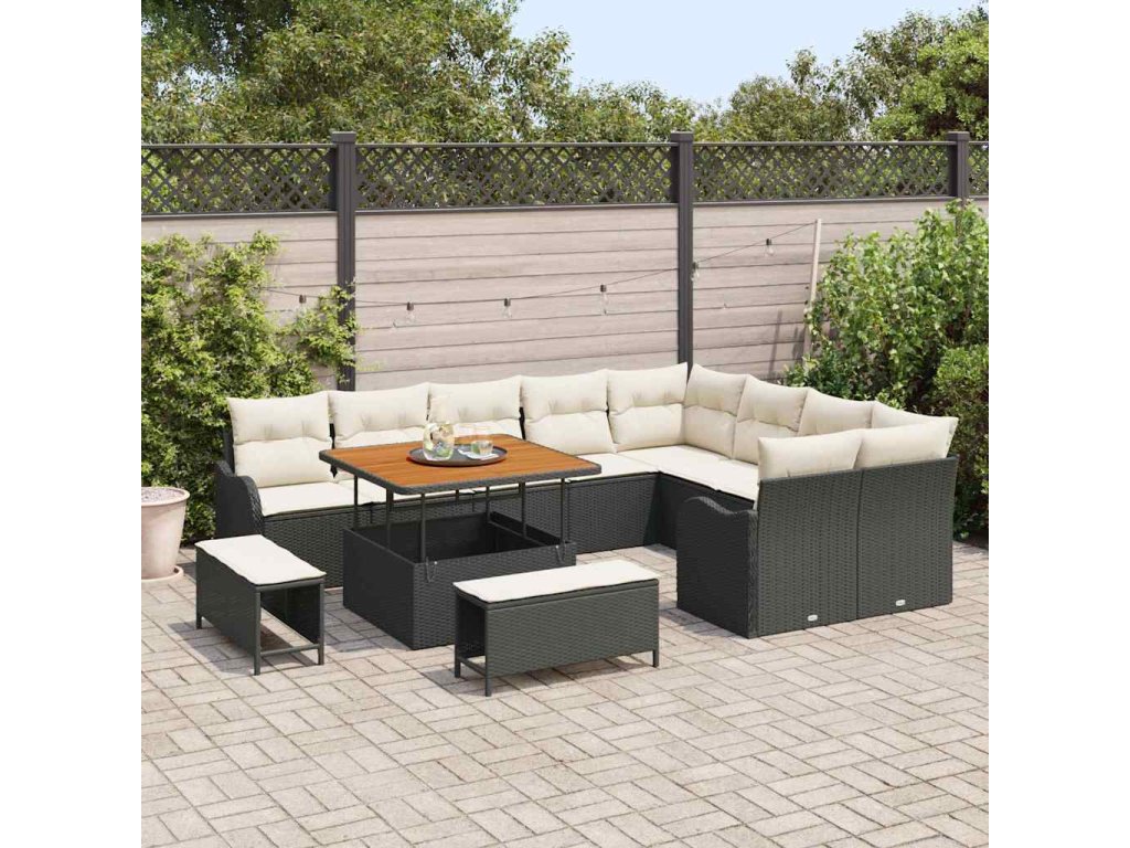 Sada zahradních pohovek s polštářem 12 pcs Černá polyratan 3362295