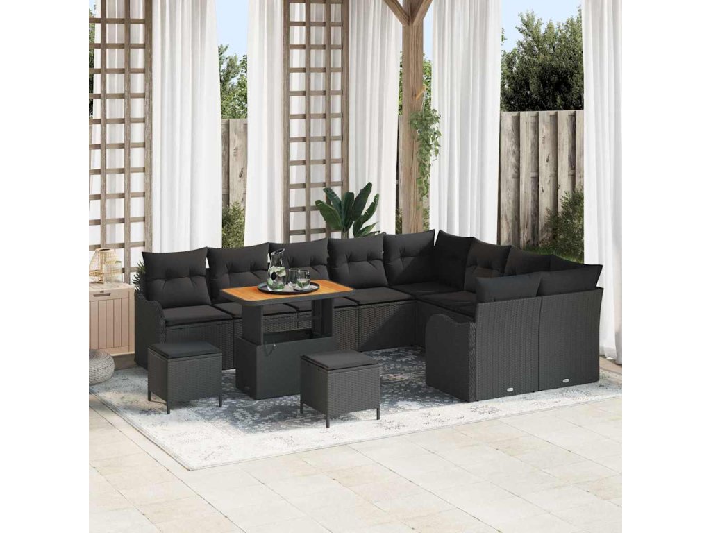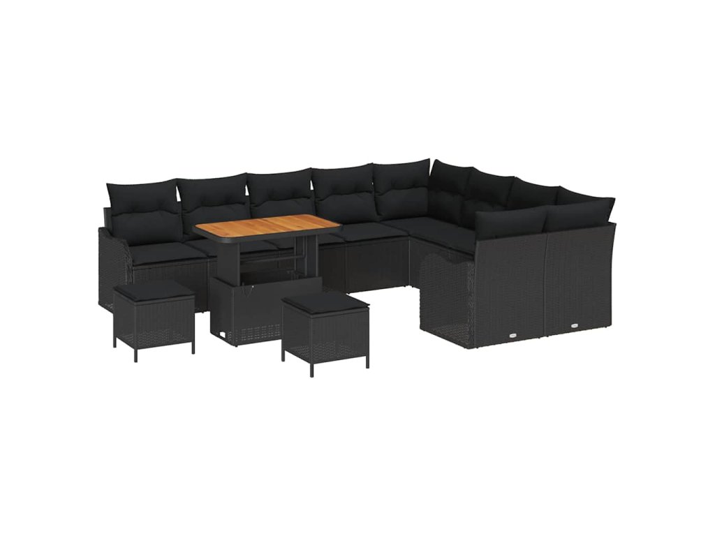 Sada zahradních pohovek s polštářem 12 pcs Černá polyratan 3362304