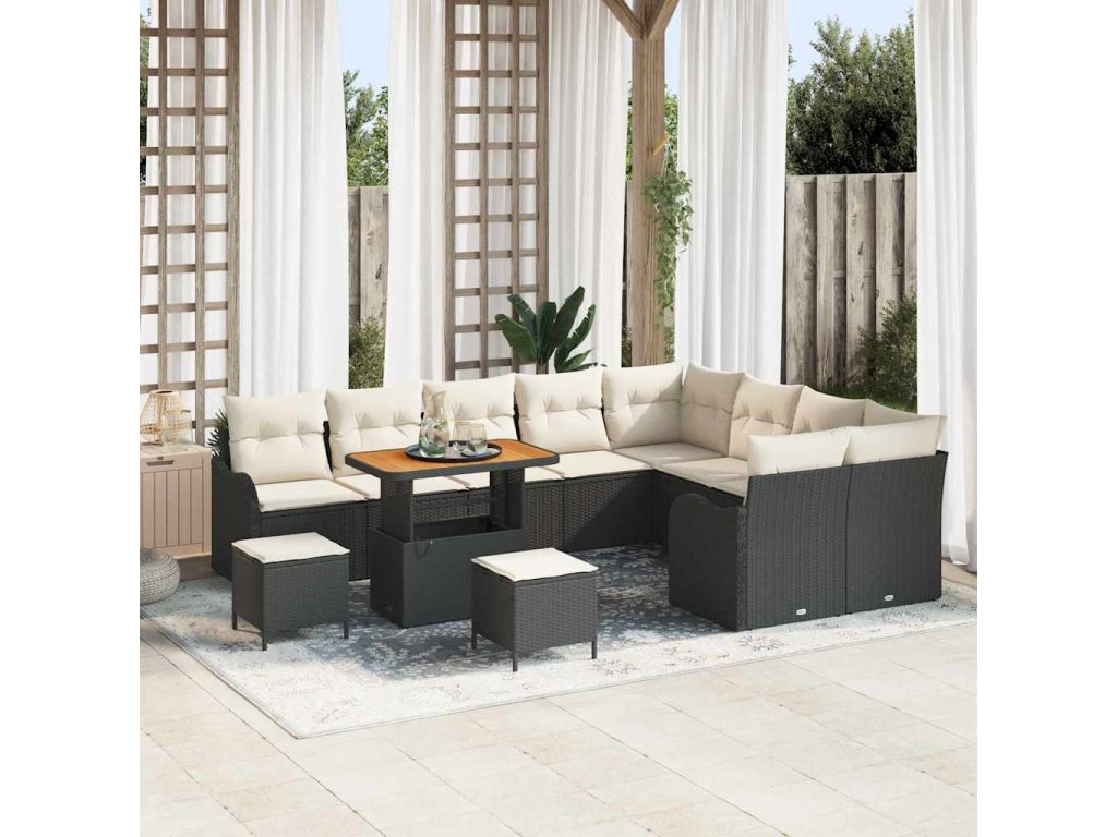Sada zahradních pohovek s polštářem 12 pcs Černá polyratan 3362305