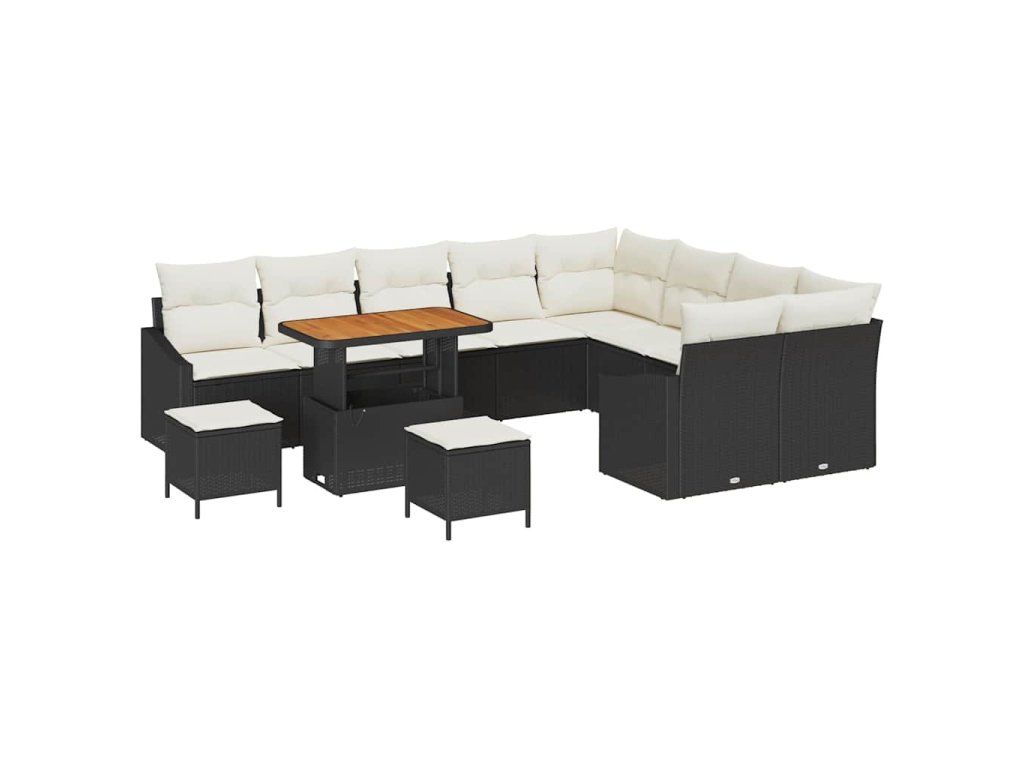 Sada zahradních pohovek s polštářem 12 pcs Černá polyratan 3362695