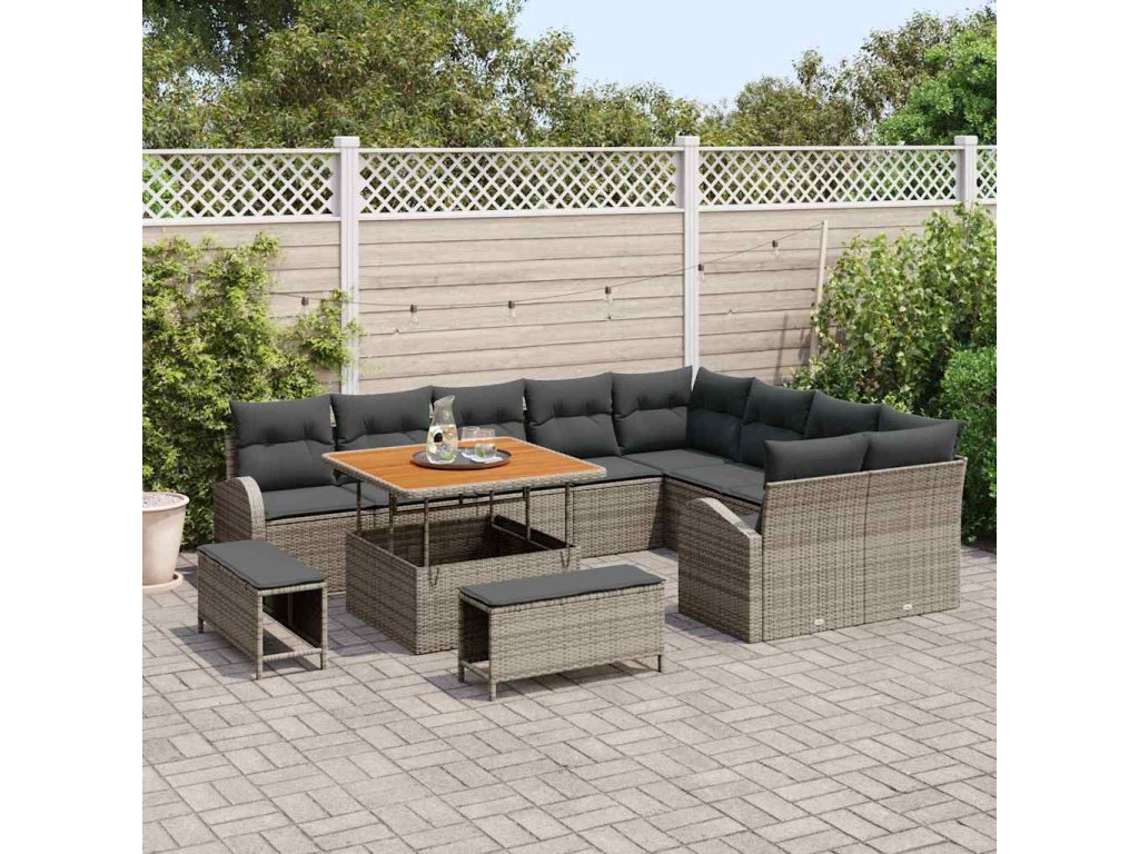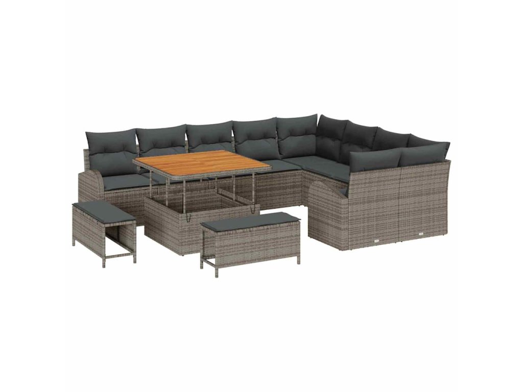 Sada zahradních pohovek s polštářem 12 pcs Šedá Poly ratan 3362428