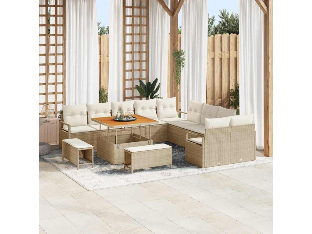 Sada zahradních pohovek s polštářem 13 pcs Béžová a krémová 3364526