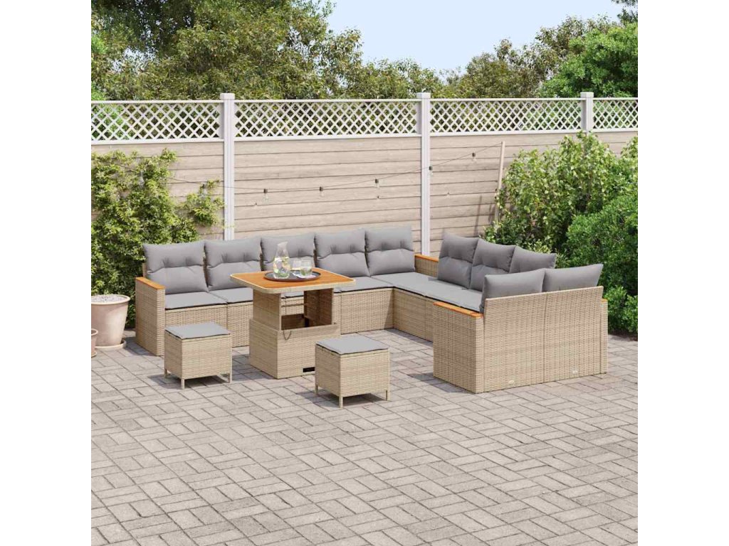 Sada zahradních pohovek s polštářem 13 pcs Béžová Poly ratan 3365052