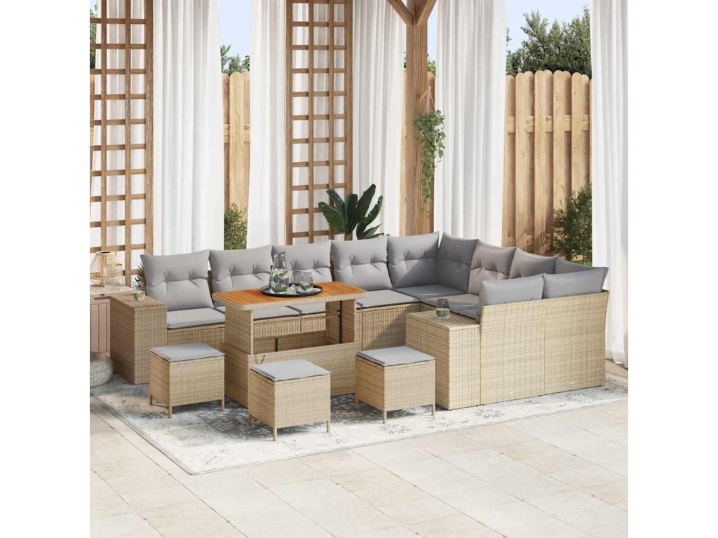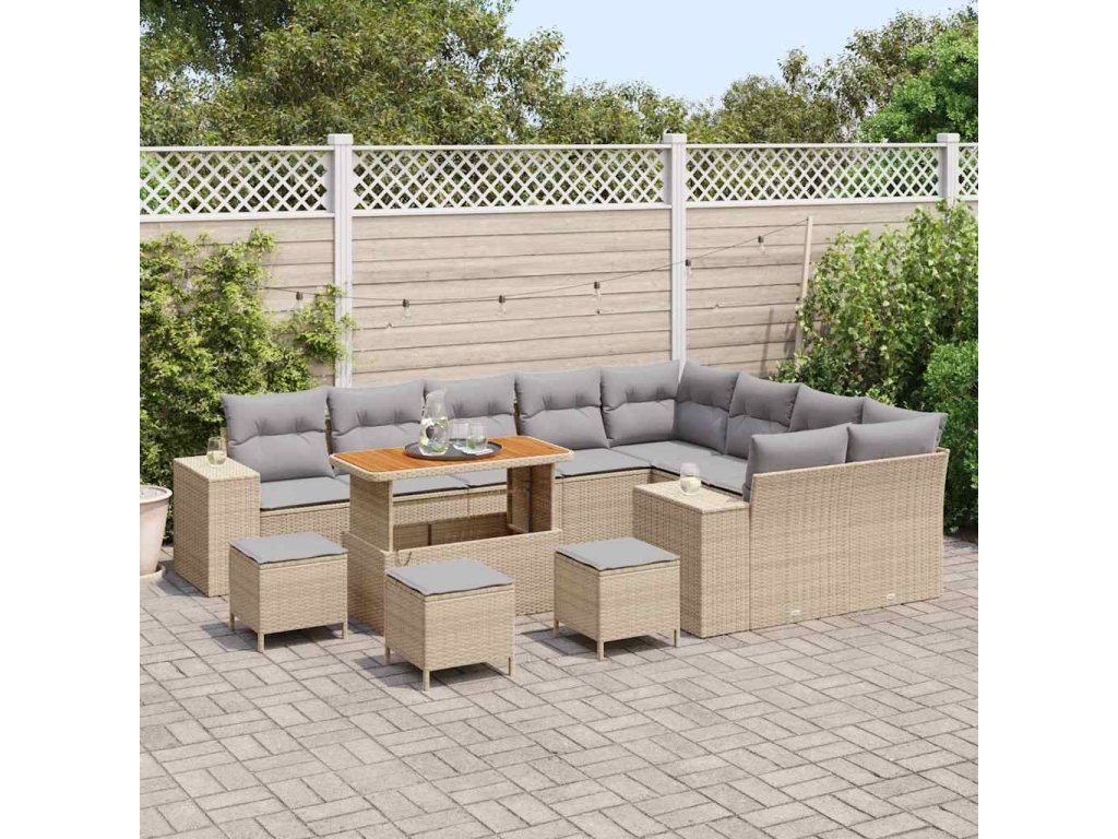Sada zahradních pohovek s polštářem 13 pcs Béžová polyratan 3362052