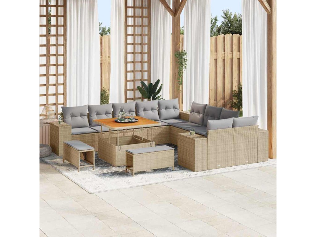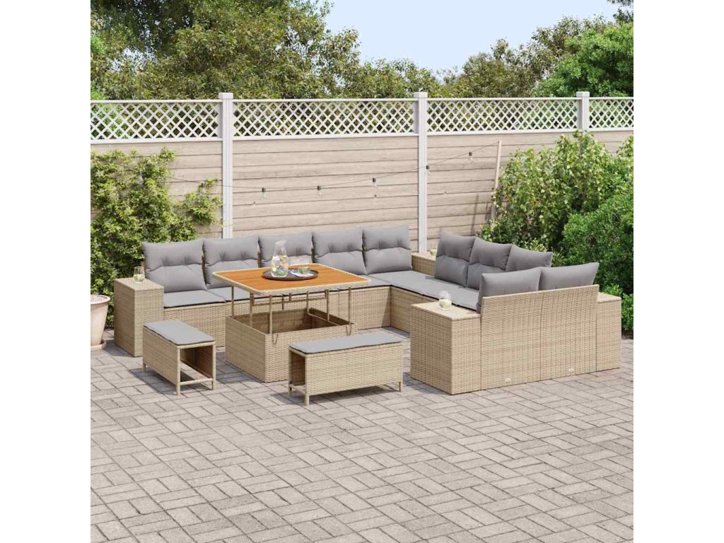 Sada zahradních pohovek s polštářem 13 pcs Béžová polyratan 3362057