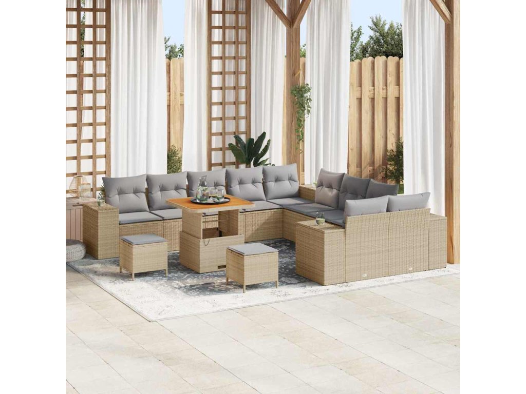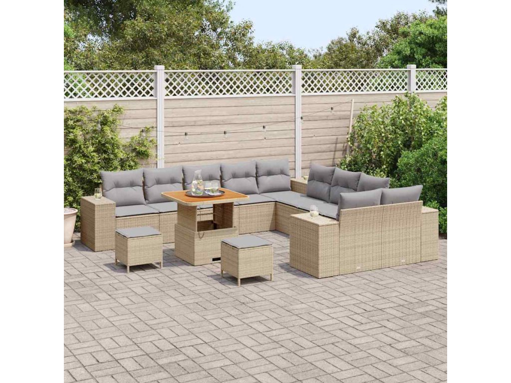 Sada zahradních pohovek s polštářem 13 pcs Béžová polyratan 3362062
