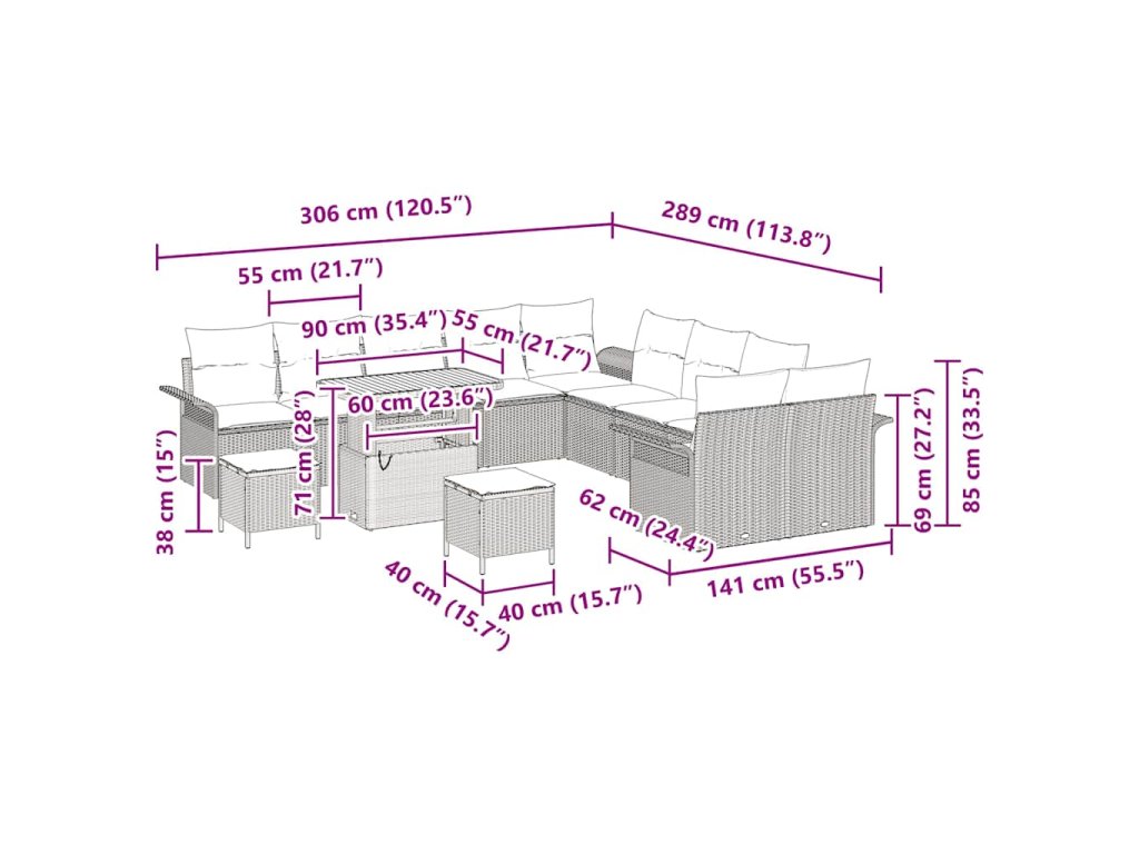 - Funkce / design: Tento pohovkový set má výškově nastavitelné stolek, který snadno změníš z kávového stolku na jídelní stůl. Jeho modulární design ti umožní množství různých úprav, takže je ideální pro každou příležitost.