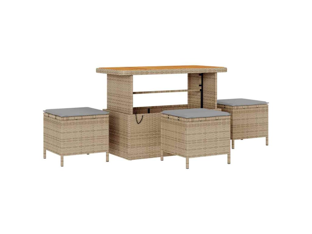 - Prémiový poly ratan: Sestava je vyrobená z kvalitního poly ratanu, který je lehký a odolný. Tento materiál snadno zvládne nepřízeň počasí a poskytuje ti stylové venkovní posezení. Elegantní textura dodává moderní šmrnc tvé terase.