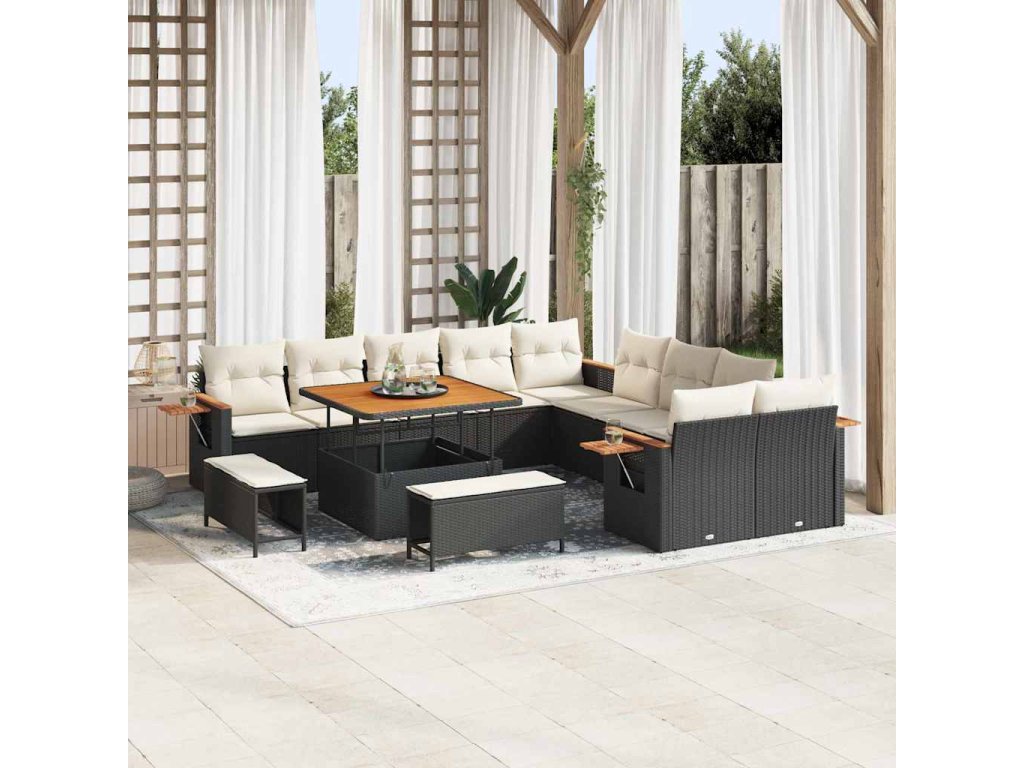 Sada zahradních pohovek s polštářem 13 pcs Černá a krémová 3363225