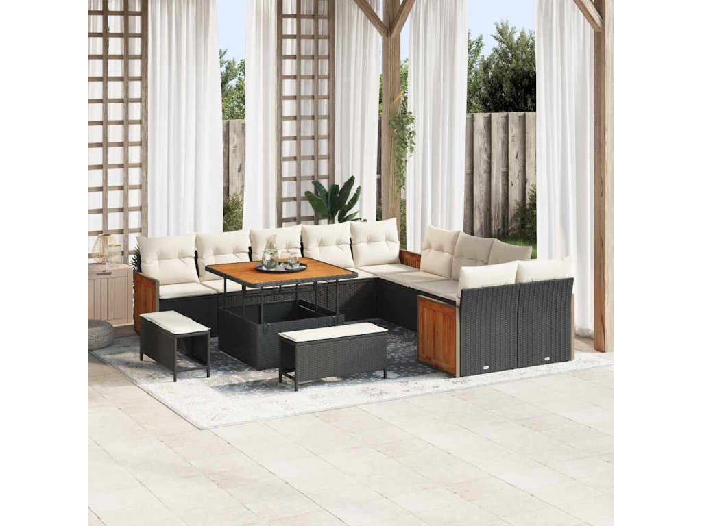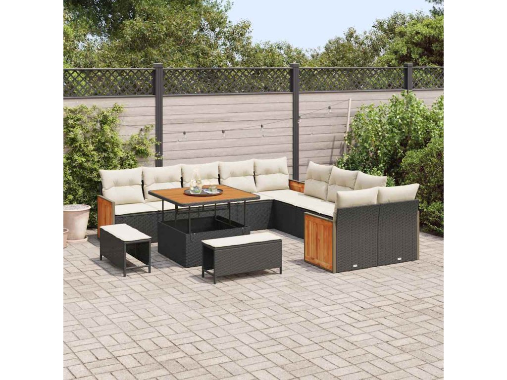 Sada zahradních pohovek s polštářem 13 pcs Černá a krémová 3363355