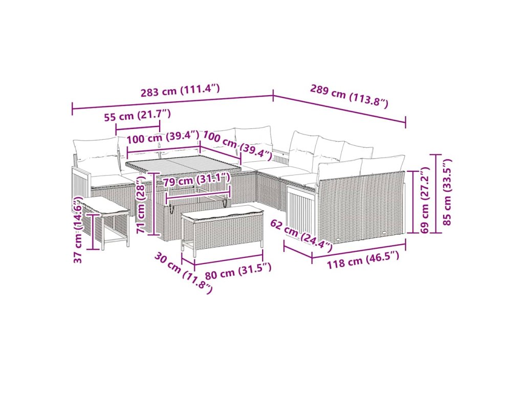 - Celkové rozměry: 100 x 100 x 71 cm (D x Š x V)