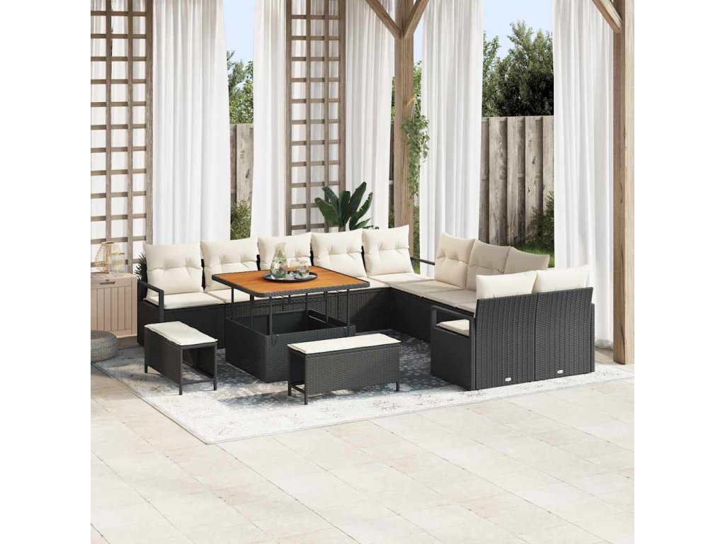 Sada zahradních pohovek s polštářem 13 pcs Černá a krémová 3364525