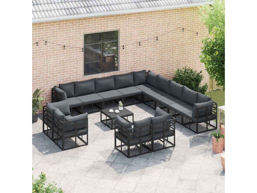 Sada zahradních pohovek s polštářem 13 pcs Černá Hliník 3378936