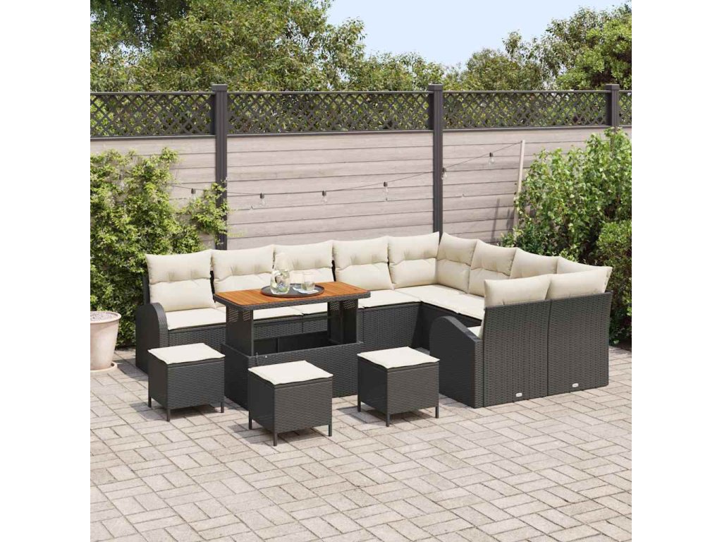 Sada zahradních pohovek s polštářem 13 pcs Černá Poly ratan 3362440