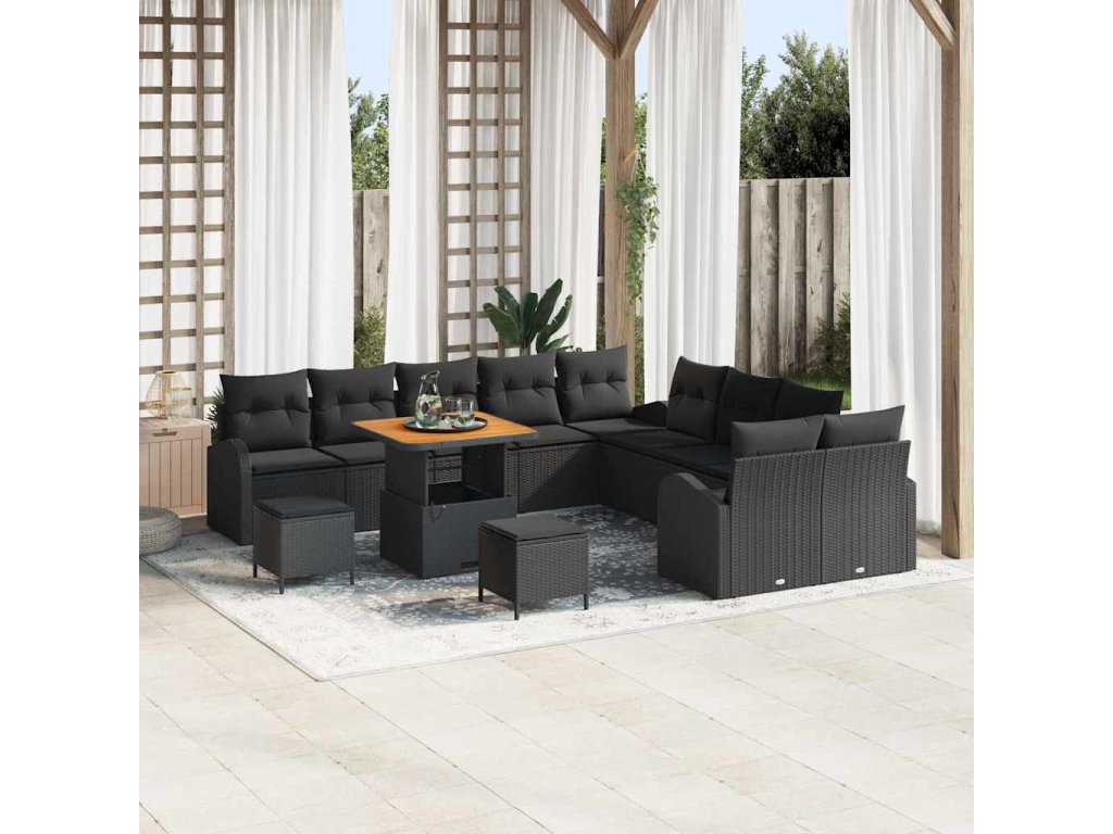 Sada zahradních pohovek s polštářem 13 pcs Černá Poly ratan 3362449