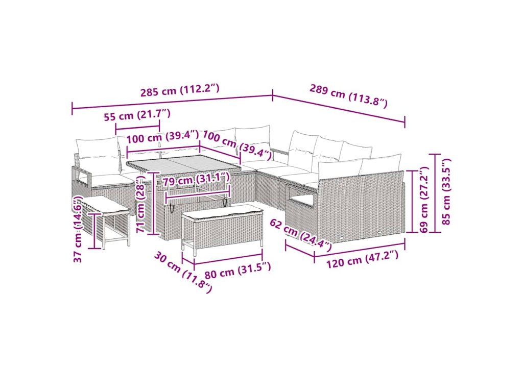 - Součásti: Každý prvek soupravy má elegantní design a poly ratanové opěrky pro pohodlí. Obsahuje polstry se zipem pro snadnou údržbu. Kombinace poly ratanu a práškově lakovaných ocelových rámů zajišťuje stabilní moderní styl — ideální pro relaxační odpoledne nebo večírky.