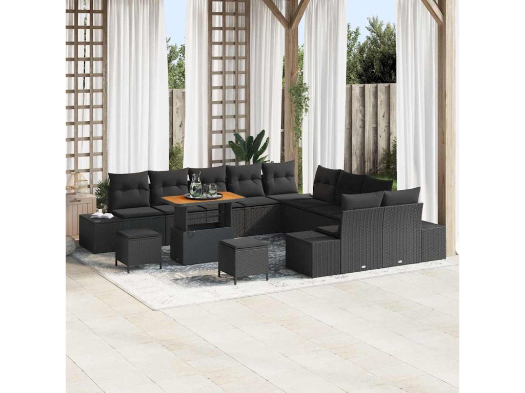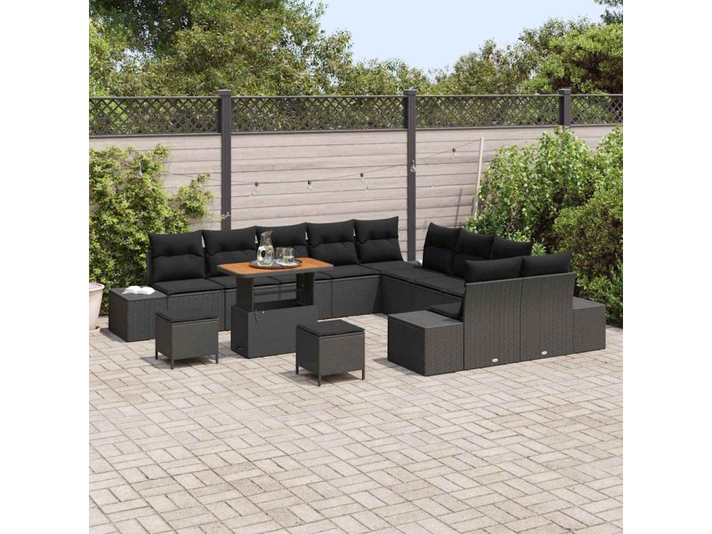 Sada zahradních pohovek s polštářem 13 pcs Černá Poly ratan 3362844