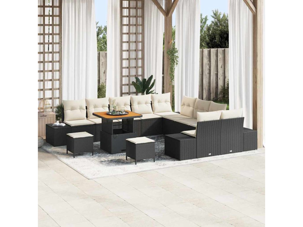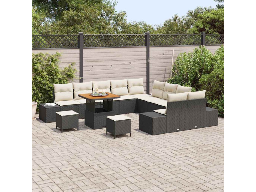 Sada zahradních pohovek s polštářem 13 pcs Černá Poly ratan 3364790