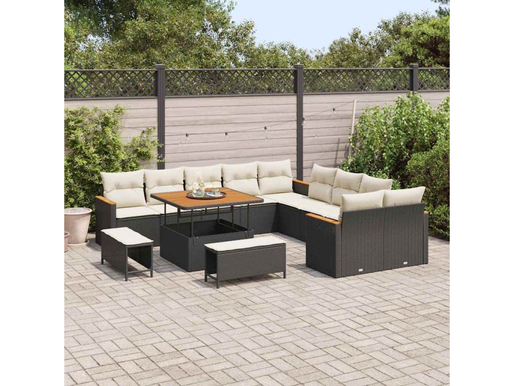 Sada zahradních pohovek s polštářem 13 pcs Černá Poly ratan 3365045