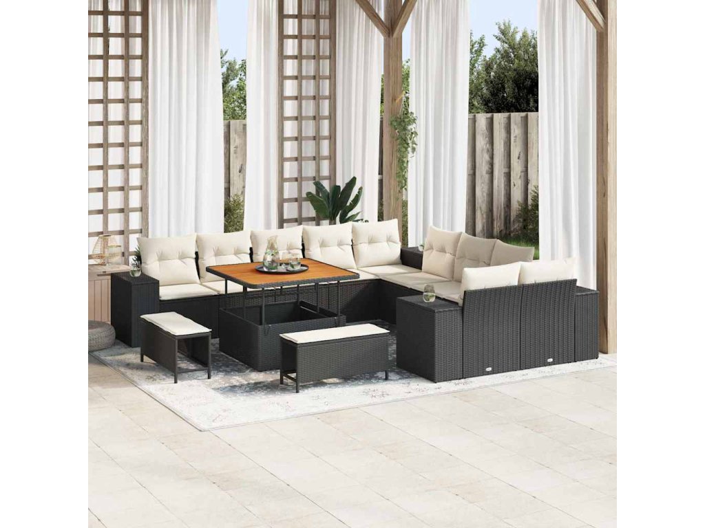 Sada zahradních pohovek s polštářem 13 pcs Černá polyratan 3362055