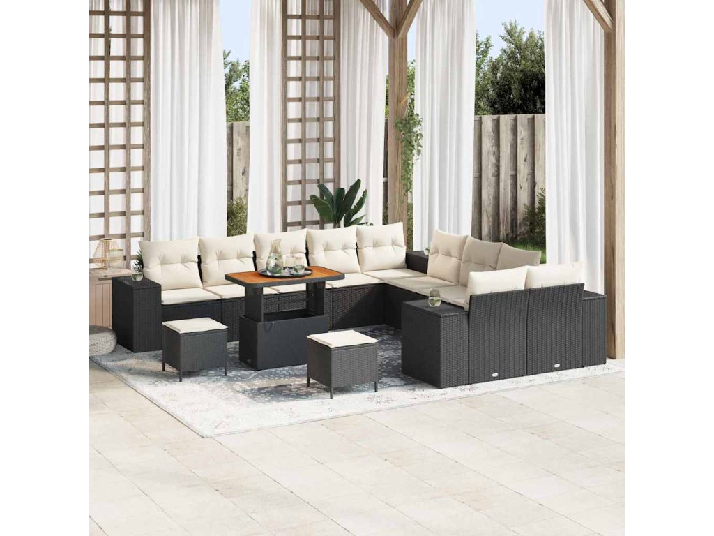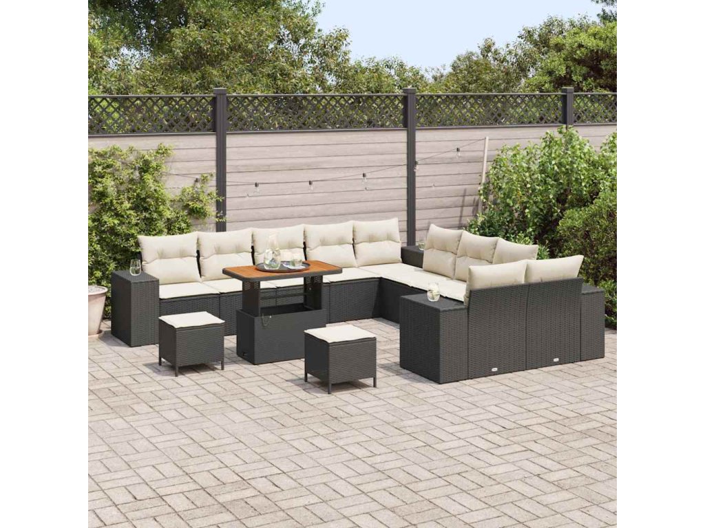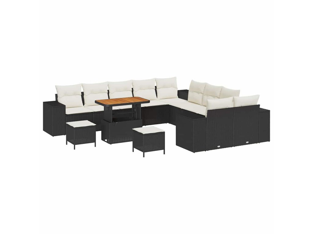 Sada zahradních pohovek s polštářem 13 pcs Černá polyratan 3362065