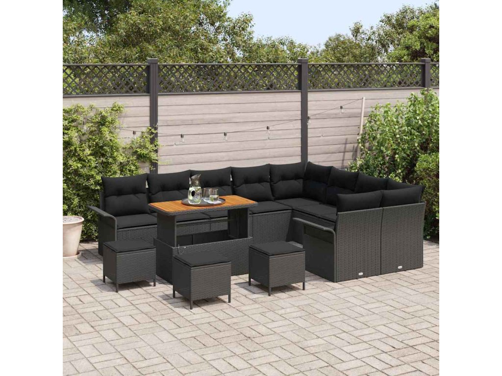 Sada zahradních pohovek s polštářem 13 pcs Černá polyratan 3362179