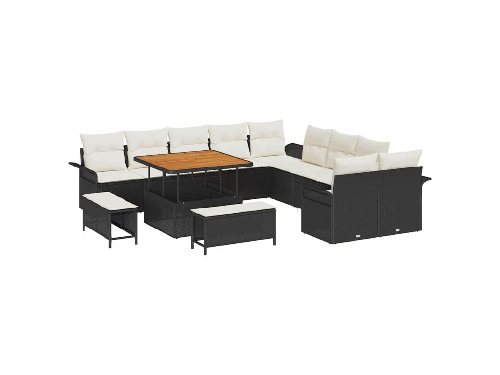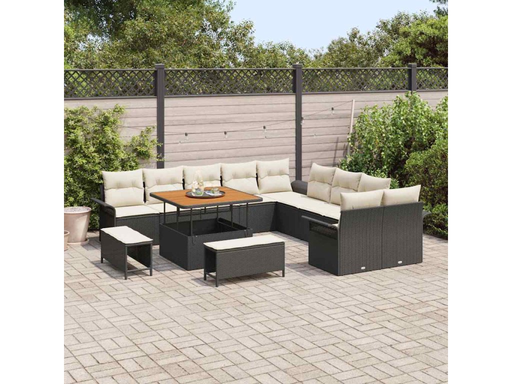 Sada zahradních pohovek s polštářem 13 pcs Černá polyratan 3362185