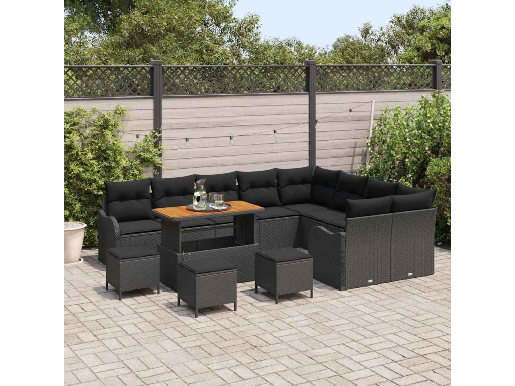 Sada zahradních pohovek s polštářem 13 pcs Černá polyratan 3362309