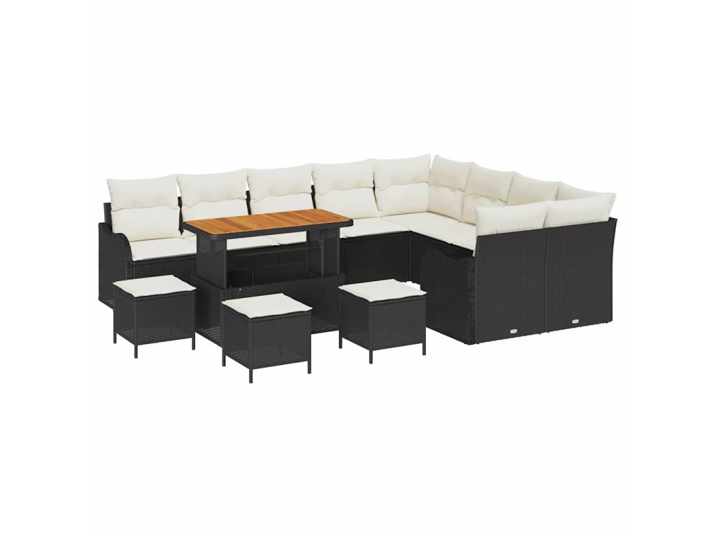 Sada zahradních pohovek s polštářem 13 pcs Černá polyratan 3362310