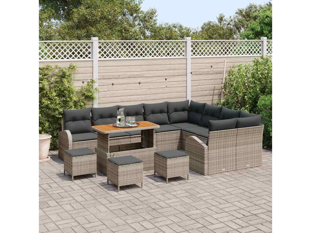 Sada zahradních pohovek s polštářem 13 pcs Šedá Poly ratan 3362443