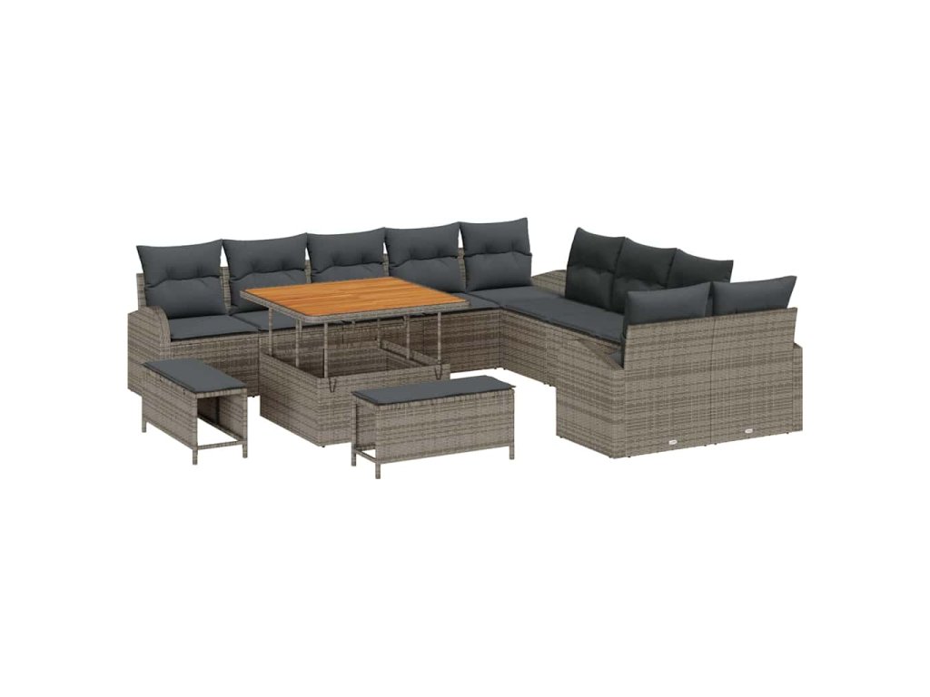 Sada zahradních pohovek s polštářem 13 pcs Šedá Poly ratan 3362448