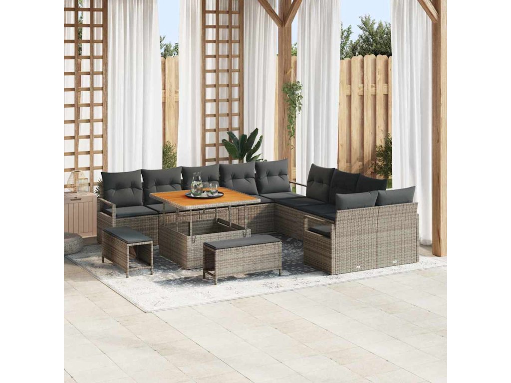 Sada zahradních pohovek s polštářem 13 pcs Šedá Poly ratan 3362578