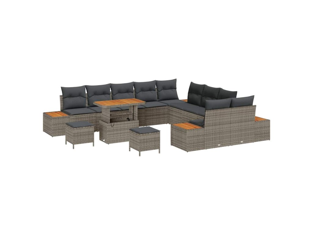 Sada zahradních pohovek s polštářem 13 pcs Šedá Poly ratan 3364928