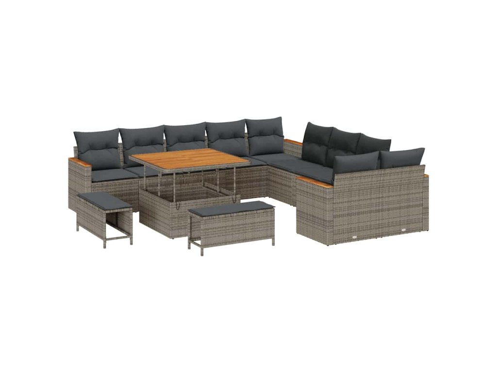 Sada zahradních pohovek s polštářem 13 pcs Šedá Poly ratan 3365048
