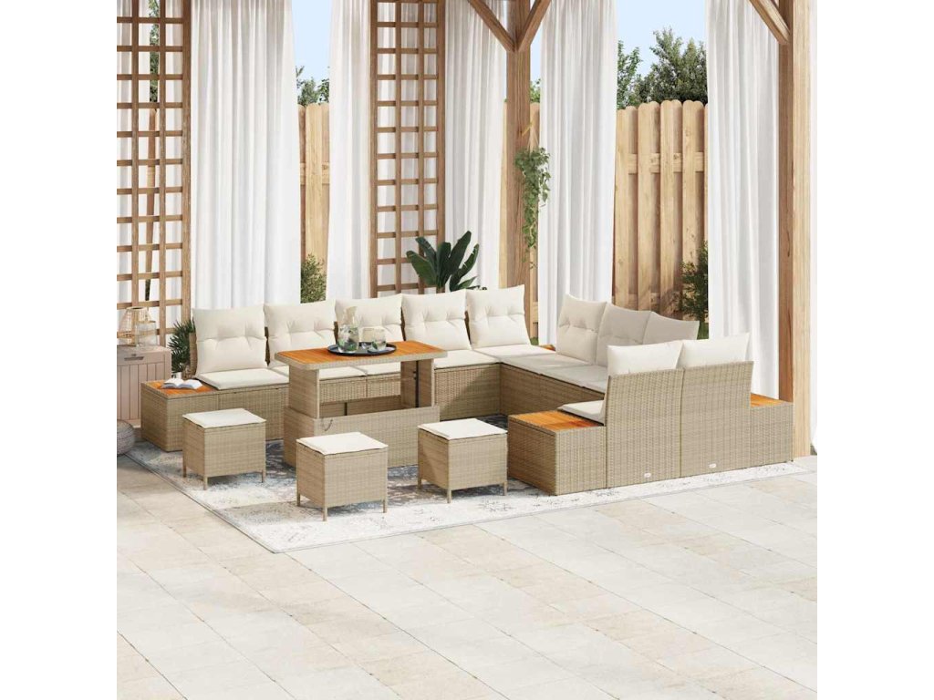 Sada zahradních pohovek s polštářem 14 pcs Béžová Poly ratan 3364931