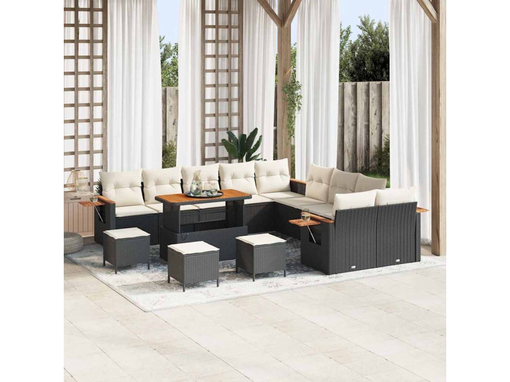 Sada zahradních pohovek s polštářem 14 pcs Černá a krémová 3363240