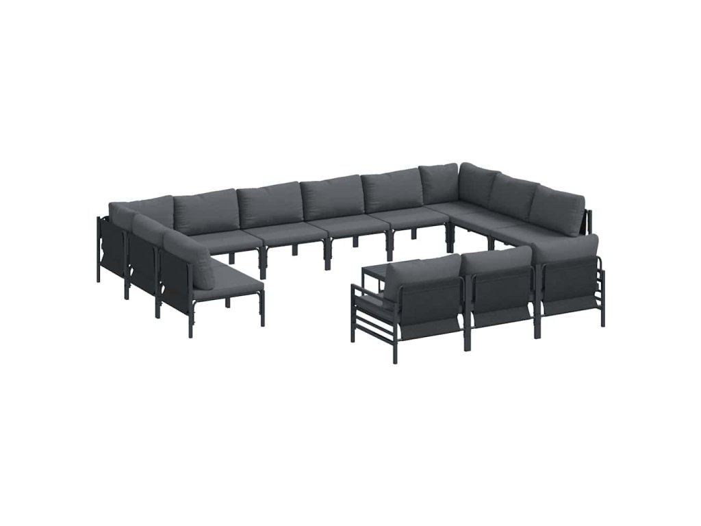 Sada zahradních pohovek s polštářem 14 pcs Černá Ocel 3379029
