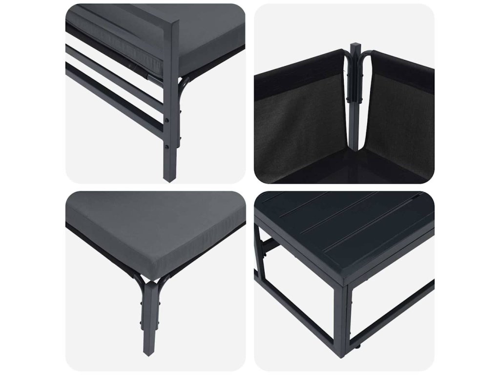 - Funkční design: Výhoda této pohovky spočívá v prodyšném designu, který zaručuje cirkulaci vzduchu i v horkých dnech. Prášková úprava dále zvyšuje estetiku a chrání před UV zářením.