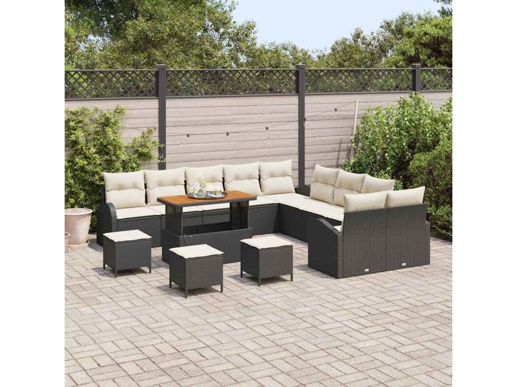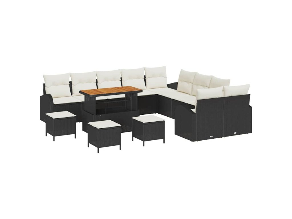 Sada zahradních pohovek s polštářem 14 pcs Černá Poly ratan 3362460