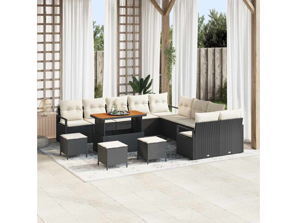 Sada zahradních pohovek s polštářem 14 pcs Černá Poly ratan 3362590