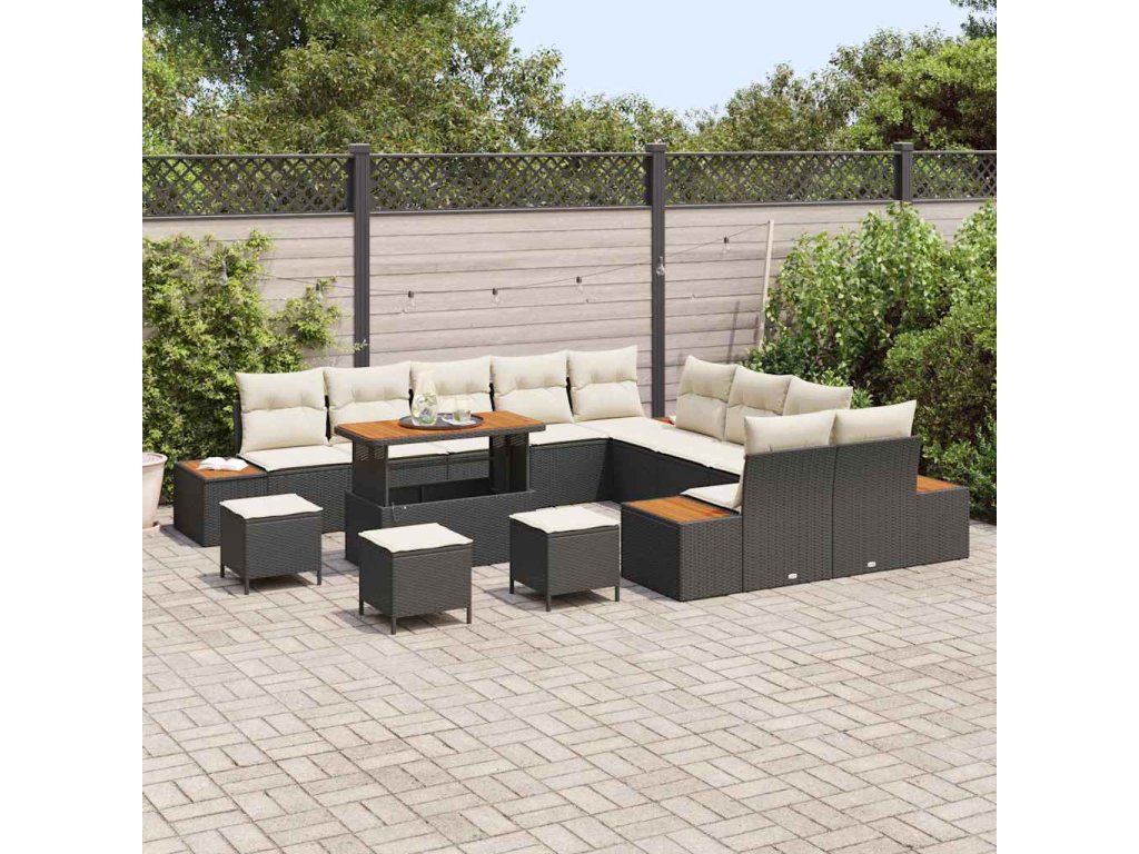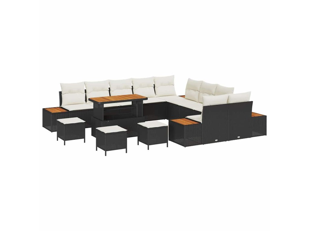 Sada zahradních pohovek s polštářem 14 pcs Černá Poly ratan 3364930