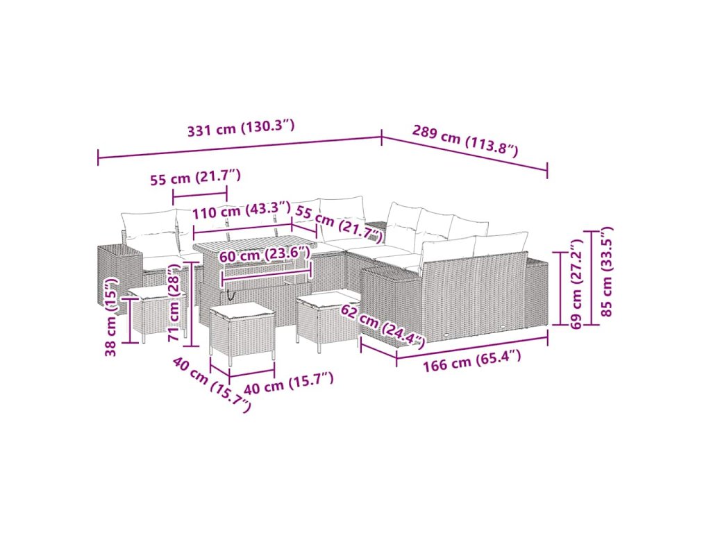 - Údržba a péče Dlouhověkost zajistíte, když set zakryjete, když ho nepoužíváte, abyste ho chránili před deštěm a sluníčkem. Snadná údržba se suchými metodami, bez tvrdých chemikálií, udržuje set v super stavu během sezón.