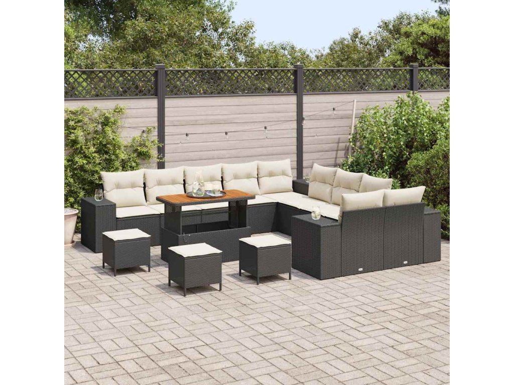 Sada zahradních pohovek s polštářem 14 pcs Černá polyratan 3362070