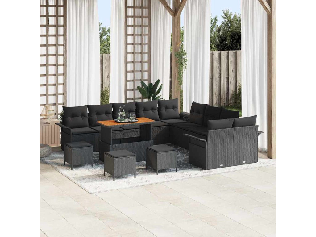 Sada zahradních pohovek s polštářem 14 pcs Černá polyratan 3362199