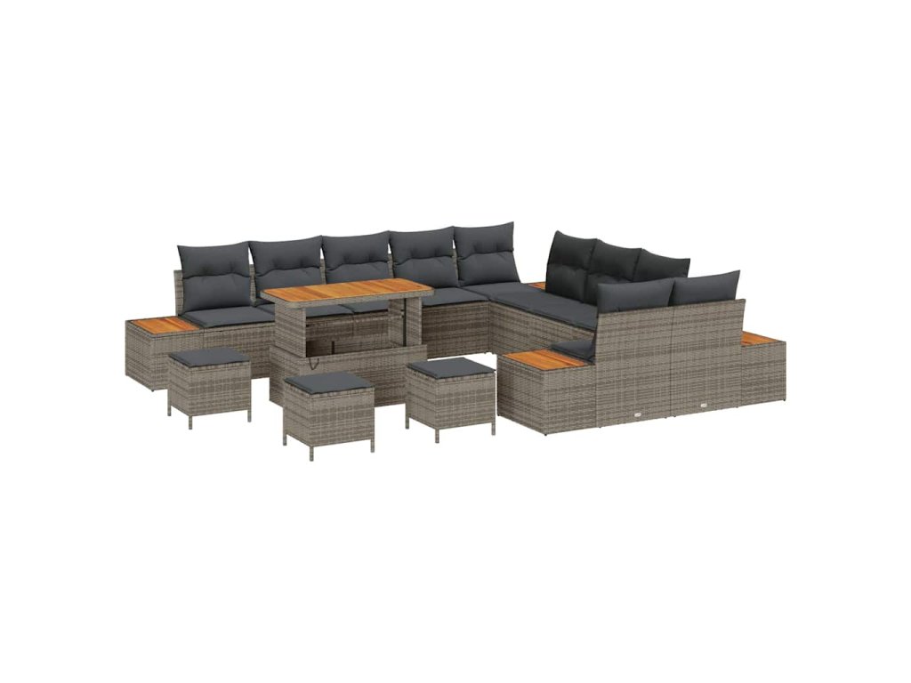 Sada zahradních pohovek s polštářem 14 pcs Šedá Poly ratan 3364933