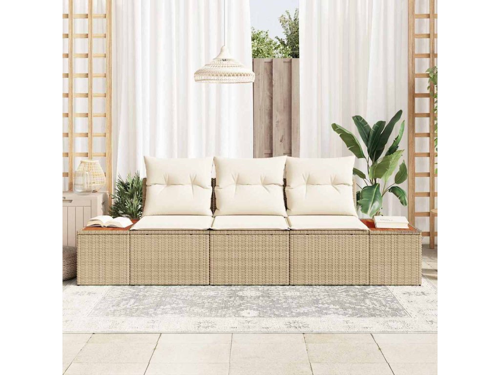 Sada zahradních pohovek s polštářem 3 pcs Béžová polyratan 3348017