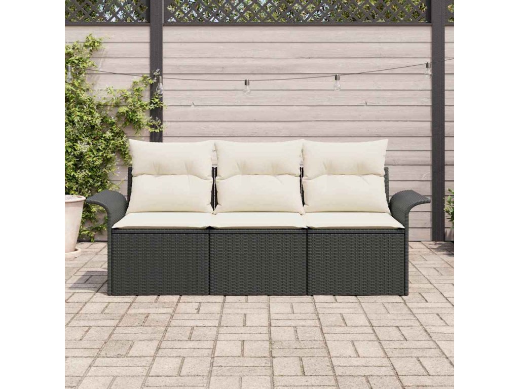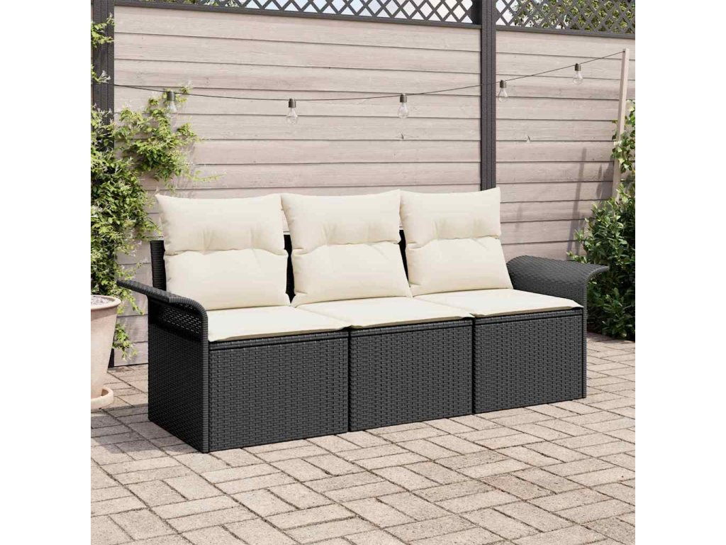 Sada zahradních pohovek s polštářem 3 pcs Černá Poly ratan 3353886