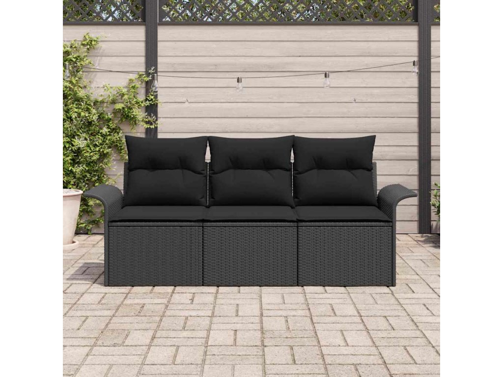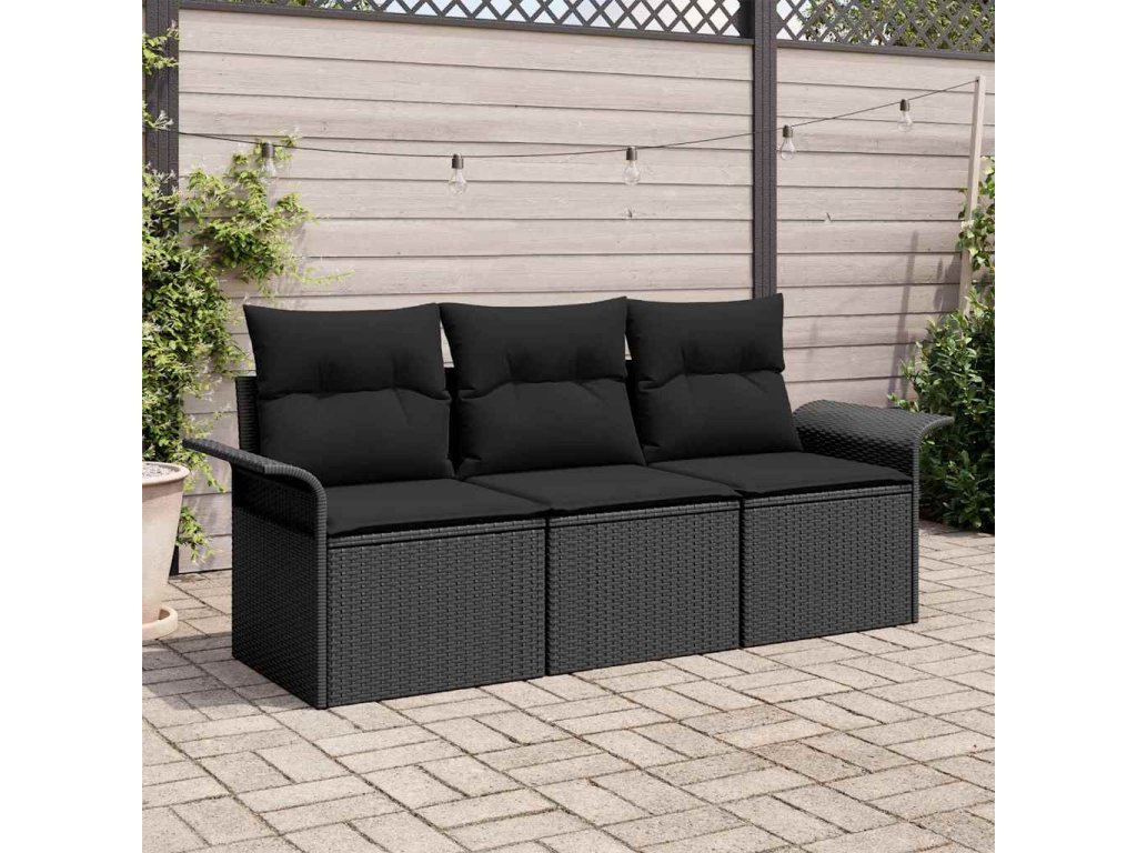 Sada zahradních pohovek s polštářem 3 pcs Černá Poly ratan 3353892