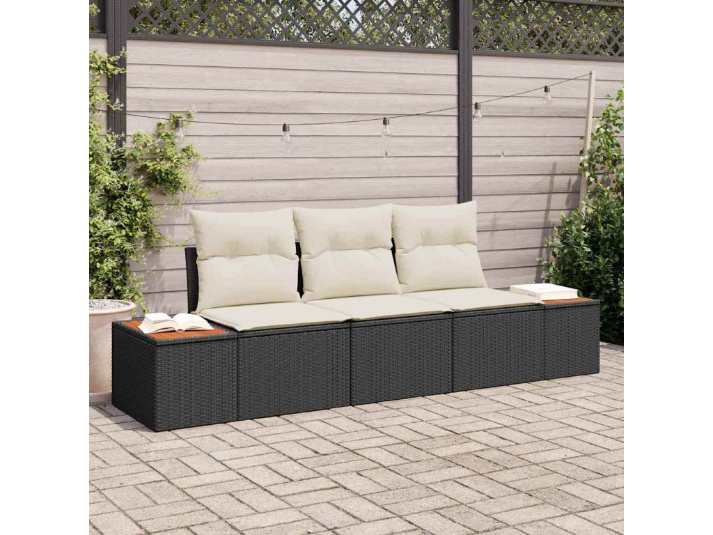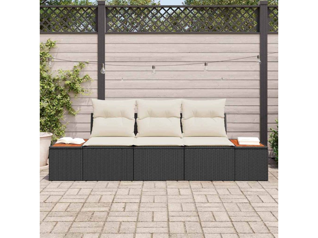 Sada zahradních pohovek s polštářem 3 pcs Černá polyratan 3348013