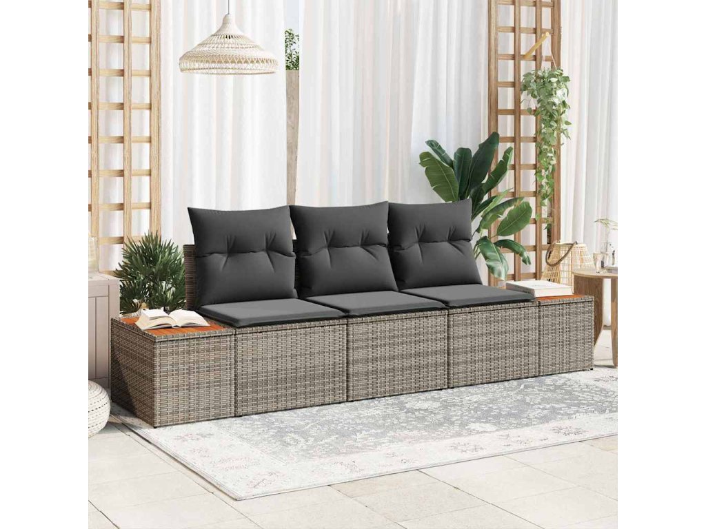 Sada zahradních pohovek s polštářem 3 pcs Šedá polyratan 3348015